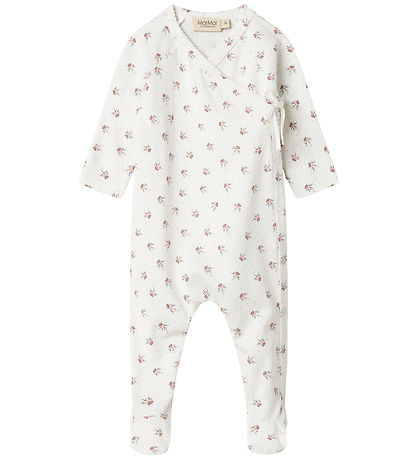 Charmante grenouillère MarMar blanche ornée d'un délicat imprimé floral et de petits points. Ses manches et ses jambes longues lui confèrent une allure élégante. Ce grenouillère MarMar est doté d'une fermeture enrouler pratique avec À cordon et À boutons poussoirs.
