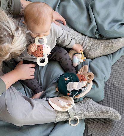 La coccinelle Sebra est faite de plys douce sur le dessus. La coccinelle émet de jolis bruissements lorsque vous déplacez le hochet. Les ailes peuvent être utilisées comme mordeur et l'enfant peut les tenir pendant l'enfant regarde dans le miroir le ventre de la coccinelle.