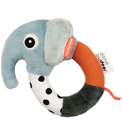 Le hochet Done by Deer contient du papier à l'intérieur, qui produit un son excitant lorsque vous touchez les oreilles de l'éléphant. Le Hochet s'adapte parfaitement à la main du petit enfant et constitue le jouets idéal pour l'enfant qui s'entraîne à saisir.