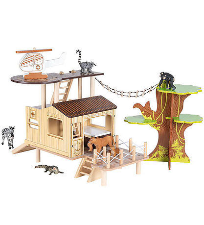 L'Hôpital de la Jungle est construit sur pilotis et doté d'une plateforme d'atterrissage sur le toit, d'enclos pour animaux et d'accès ludiques par Échelle et pont de singe. Le Ensemble comprend également un grand baobab et une table d'examen pour aider les animaux à retrouver toute leur force. L'Hôpital de la Jungle offre des expériences ludiques et créatives aux enfants.