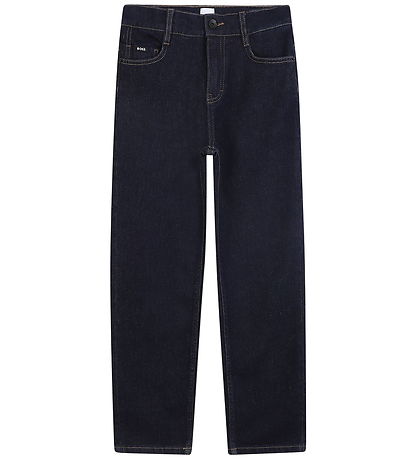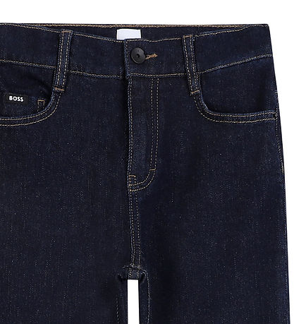 Jean BOSS élégant en navy denim foncé extensible. BOSS possède une taille élastique ajustable et se ferme par un bouton et une fermeture éclair. Il est doté de poches pratiques à l'avant et d'une poche latérale à l'arrière. Ses coutures contrastées lui confèrent un look moderne. Des passants de à la taille permettent un ajustement optimal.