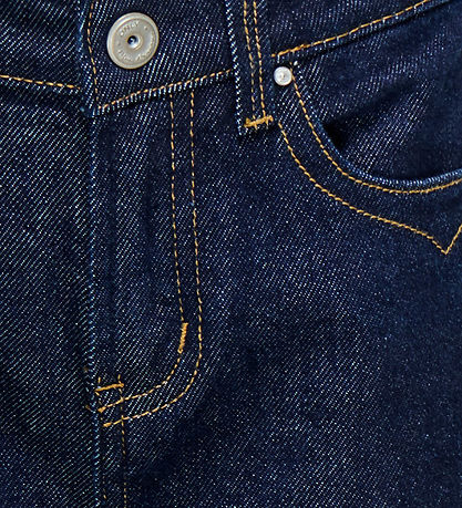 Jean Kids Only Kids Only élégant, couleur denim foncé. Il est doté d'une fermeture boutonnée classique sur le devant, de passants de ceinture et d'élastiques réglables à l'intérieur. Il est doté de poches pratiques à l'avant et à l'arrière. Son design intemporel est souligné par des surpiqûres contrastées visibles qui soulignent sa structure.