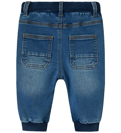Jean Name It classique bleu à l'aspect délavé. Confectionné en molleton de coton avec intérieur en polaire, il possède une taille élastique ajustable par des boutons intérieurs. Il est doté de passants de ceinture pratiques et À cordon décoratifs à l'avant. Il possède trois poches avant et deux poches arrière. Les ouvertures de jambes sont bords côtelés pour un ajustement parfait.
