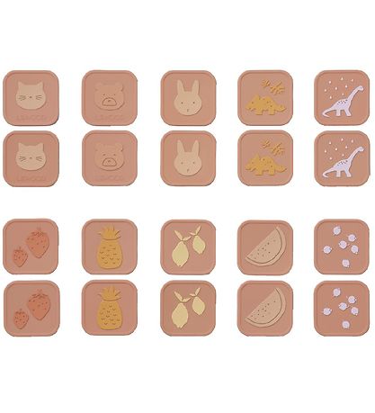 Le Liewood se compose de 20 briques en forme de carrés, qui mettent à l'épreuve la mémorisation des enfants. Les pièces sont mélangées et étalées avec le motif vers le bas, puis la chasse aux paire commence. Les pièces sont en silicone et sont livrées dans une boîte pratique, elles peuvent donc être facilement emballées et transportées.