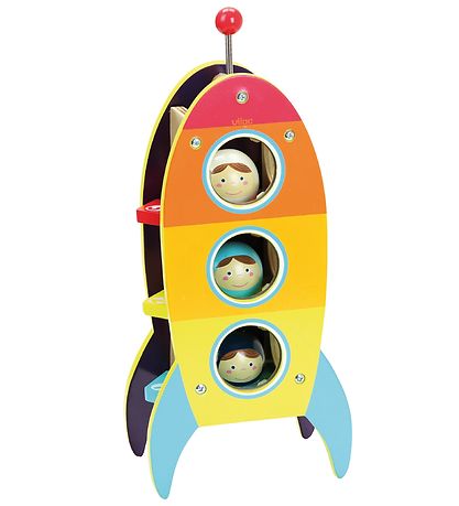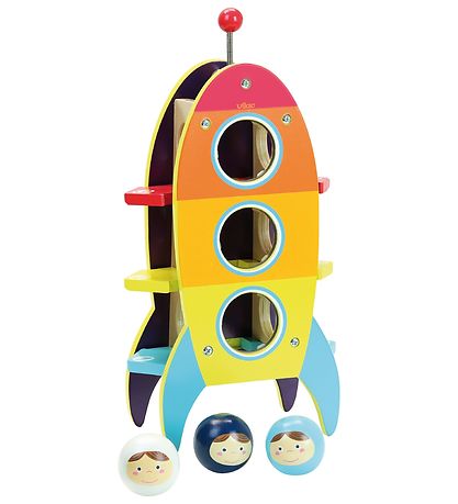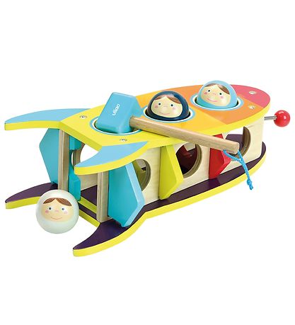 Amusant jeux de marteau Vilac en bois en forme de vaisseau spatial avec des têtes astronaut.