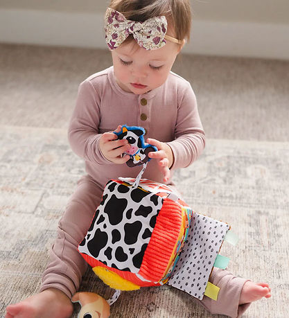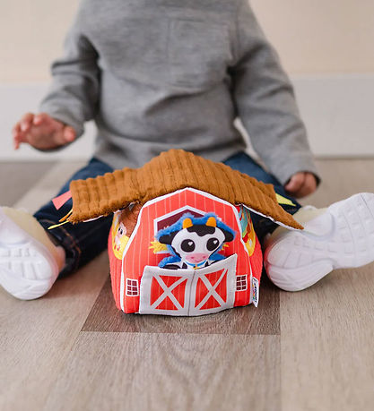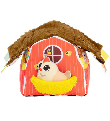 Le jouets d'activité Lamaze est coloré et composé de différents matériaux aux textures variées. Sur le toit, un rabat permet de voir des images de l'intérieur de la grange. Aux extrémités, d'amusants animaux de la ferme sont cachés et attendent d'être découverts. Les animaux et la grange crépitent au toucher, et le jouet d'activités est doux et agréable au toucher.