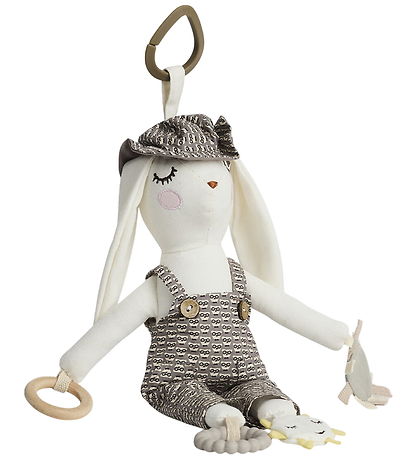 Le lapin regorge d'activités amusantes à explorer pour les tout-petits. Il est doté d'un crépitement, d'une clochette et d'un hochet. En plus d'être doux à câliner, l'enfant peut aussi mâchouiller un anneau de dentition en silicone. Il est également doté d'un ring en bois et d'applications indéchirables.