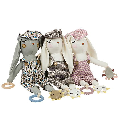 Le lapin regorge d'activités amusantes à explorer pour les tout-petits. Il est doté d'un crépitement, d'une clochette et d'un hochet. En plus d'être doux à câliner, l'enfant peut aussi mâchouiller un anneau de dentition en silicone. Il est également doté d'un ring en bois et d'applications indéchirables.