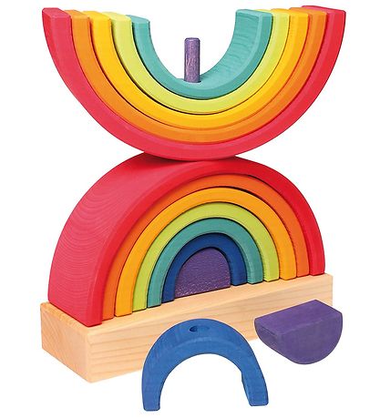 Le Grimms est en bois et est parfait pour les petits qui développent encore leur motricité et leur logique. La partie inférieure est munie d'un long bâtonnet central qui s'insère dans un trou présent sur chaque arc-en-ciel, permettant ainsi aux enfants de tenir debout. Les couches de l'arc-en-ciel s'assemblent toutes, obligeant les enfants à trouver le bon ordre. Lorsqu'il n'est pas utilisé pour jouer, l'arc-en-ciel constitue également une décoration smart dans la chambre des enfants.