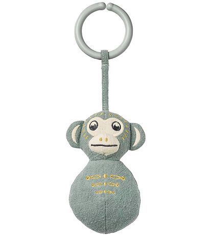 jouet suspendu amusant Elodie Details en forme de singe en vieux bleu et beige avec des détails brodés en noir et or.