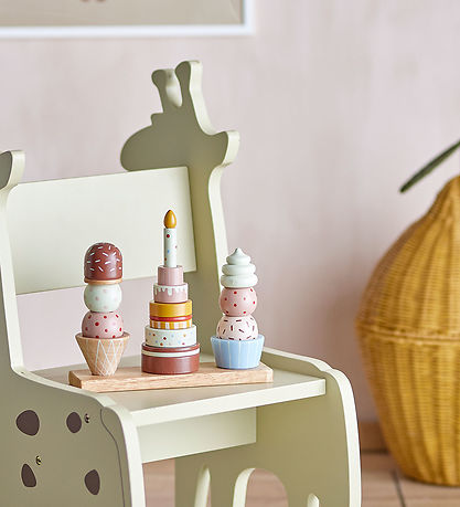 jouets de nourriture Bloomingville colorés aux tons rose et marron, accompagnés de différents gâteaux et glaces. Ce Ensemble comprend des détails amusants qui encouragent l'imagination et la construction créative.