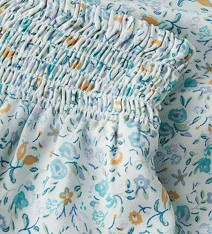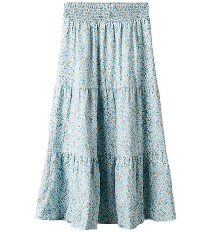 Jupe élégante Name It bleu clair avec un délicat imprimé all-over de fleurs dans des tons turquoise, violet, orange et bleu.