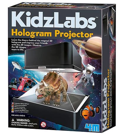 Le projecteur hologram 4M contient tout le nécessaire pour donner vie aux hologrammes 3D, y compris deux piles AAA et 8 motifs différents qui peuvent prendre vie, dont un dinosaure et une voiture de course.