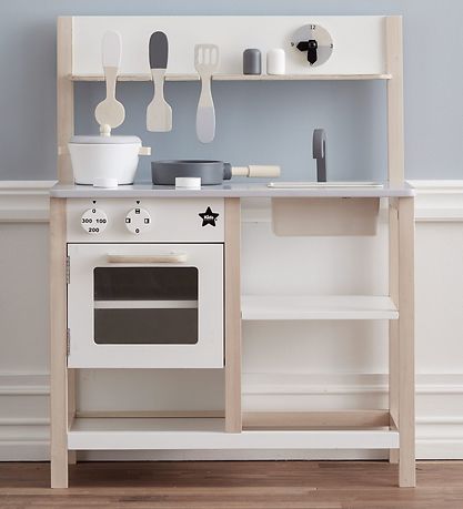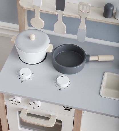 jouet de cuisine en bois Kids Concept Super divertissante en blanc et gris.