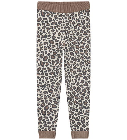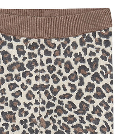 Élégant leggings Fliink tricoté avec un motif léopard dans des tons marron et beige. Fliink est doté d'une taille élastique et de bords côtelés aux chevilles pour un ajustement parfait.