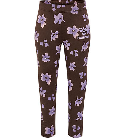 Magnifique legging Hummel dans une teinte marron foncé avec un fin imprimé floral aux couleurs violet et blanc. Le Leggings a un grand imprimé logo sur le devant en blanc qui ajoute une touche sportive.
