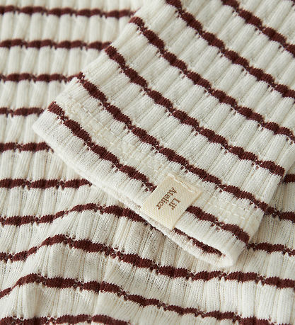 Magnifique leggings Lil' Atelier ivoire blanc à a rayures horizontales brun rougeâtre et finement côtelé. Lil' Atelier taille élastique assure un confort optimal.