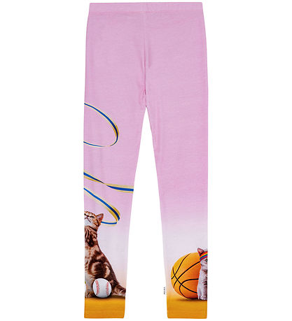 Legging Smart Molo violet clair avec un imprimé photoréaliste de chats sportifs avec des fanions et divers ballons de sport.
