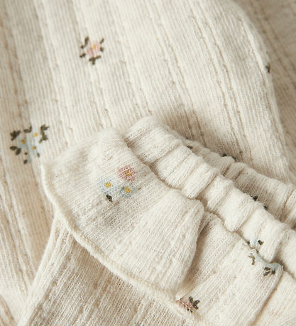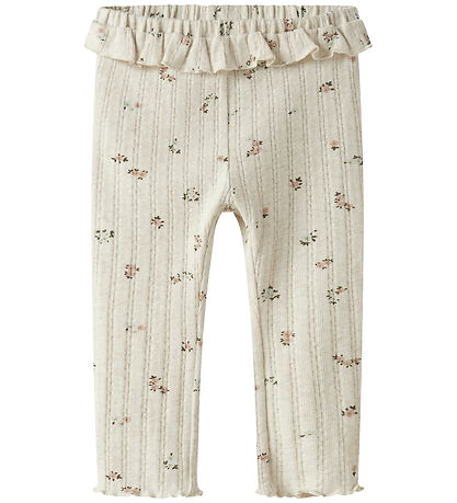Élégant leggings Name It, couleur crème clair, orné d'un délicat imprimé floral. Name It présente une belle structure et un élastique à la taille, ainsi qu'un borde à volant décoratif en haut pour une touche d'originalité.