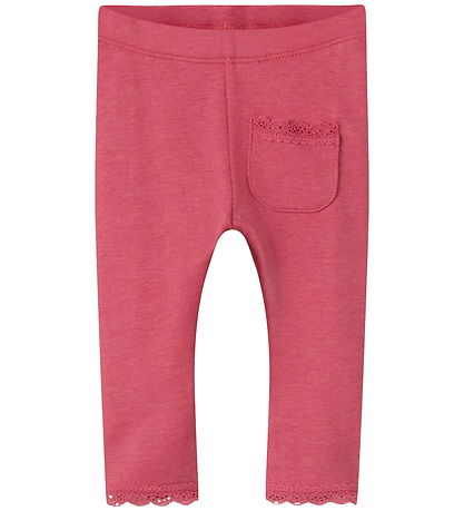 Élégant leggings Name It d'un rose chaud, avec une petite poche ornée d'un bord en dentelle. Name It est doté d'une taille élastique et d'un fin bord en dentelle aux chevilles, pour une touche de délicatesse.