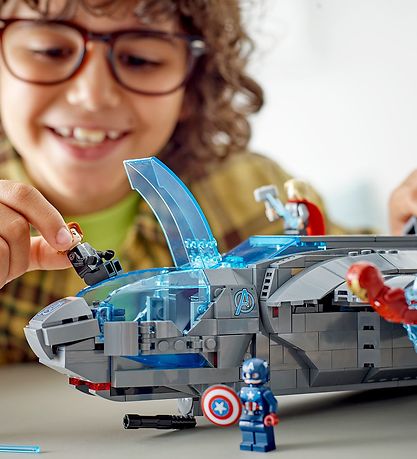 L' ensemble LEGO® Marvel The Infinity Saga est le jouets parfait pour l'enfant créatif qui souhaite construire et jouer avec l'avion quinjet avec un cockpit, un espace passagers et une section arrière qui s'ouvrent, ainsi qu'un train d'atterrissage extensible et des ailes réglables. L' ensemble comprend des figurines de Black Widow, Thor avec son marteau, Iron Man, Captain America avec son bouclier et Loki avec son sceptre. Un présentoir amovible et un choix de deux feuilles d'autocollants sont inclus afin que le quinjet puisse être décoré avec les symboles Avengers ou SHIELD.