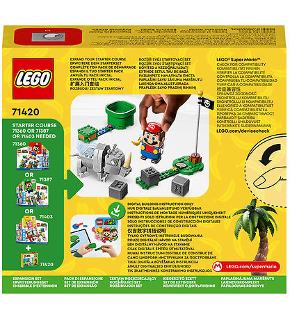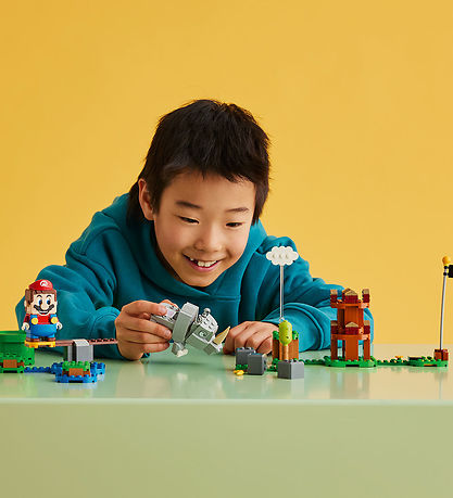 Ensemble d'extension LEGO® Super Mario amusant avec un total de 106 blocs de construction, qui peuvent être assemblées pour former le rhinocéros Rambi, que la figurine Mario/Luigi/Peach des LEGO® Super Mario peut ride.