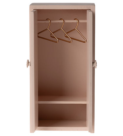 accessoires de poupée Maileg élégants dans une jolie couleur rose. L'armoire a deux portes et un design simple et raffiné.