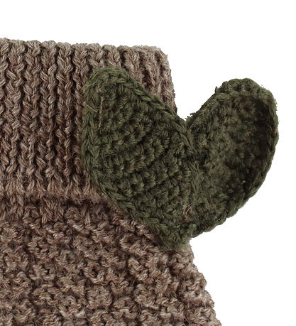 Magnifiques moufles Konges Sløjd tricotées dans un coloris marron chiné. Konges Sløjd design simple, orné d'une moufles verte, les rendront confortables et élégantes par temps froid.