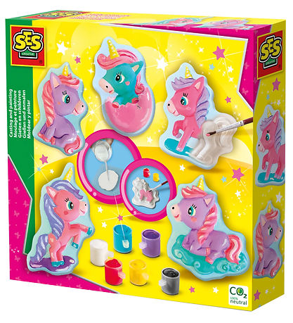 Le ensemble SES Creative est parfait pour les créatifs, car vous pouvez mouler et peindre vous-même 5 poulains licornes différents. La peinture et le plâtre peuvent être facilement lavés sur le tissu et la peau.