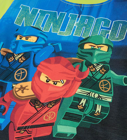 Joli blouse LEGO® Wear Ninjago dans une belle couleur vert-jaune et avec un imprimé détaillé et coloré sur le devant des figurine jouet LEGO® Ninjago et le mot « Ninjago» en haut.