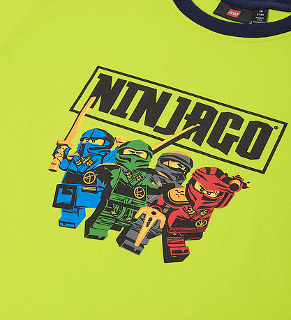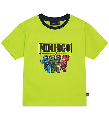 T-shirt LEGO® Wear Ninjago d'un beau citron vert, orné d'un motif Ninjago original sur le devant. Ce motif met en scène les figurine jouet emblématiques LEGO® Ninjago dans des couleurs vives, avec « Ninjago » en noir au-dessus. Ce t-shirt LEGO® Wear possède un col tour rib bleu foncé qui contraste joliment avec la couleur de base vibrante.