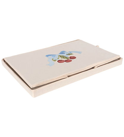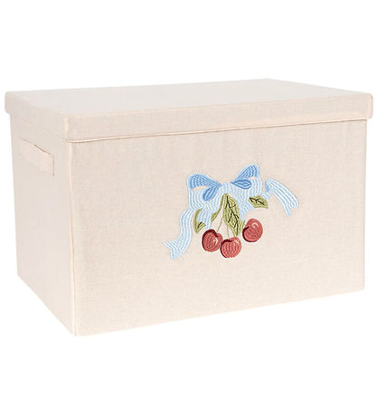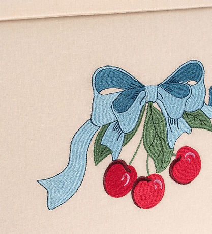 Panier de rangement raffiné Konges Sløjd en rose clair avec un magnifique imprimé brodé de cerises et de nœuds.
