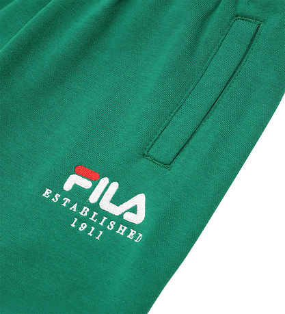 pantalon de jogging Fila confortable dans une couleur verte élégante avec un logo Fila discret brodé sur une jambe.