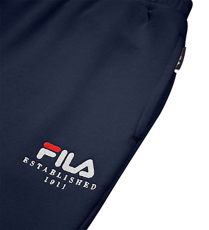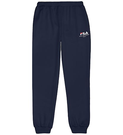 pantalon de jogging de pantalon de jogging fonctionnel Fila, d'un bleu foncé classique, orné d'un discret logo Fila brodé sur la cuisse. Fila est doté d'une taille élastique et de bords côtelés aux chevilles pour un confort optimal.