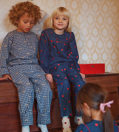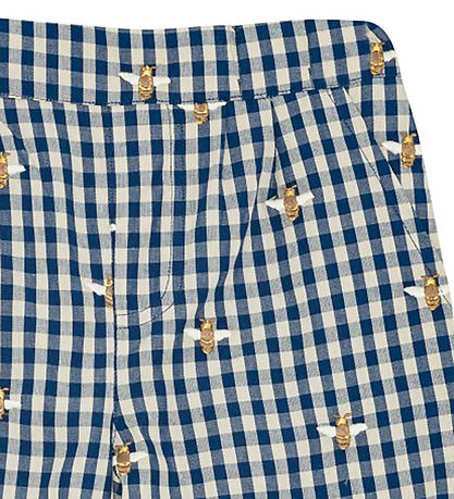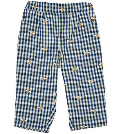 Charmant pantalon Flöss au motif classique à carreaux bleu et blanc. Flöss est pantalons de petites abeilles brodées. Sa coupe ample et sa taille confortable assurent un bon maintien. Pantalons est doté de poches latérales pratiques.