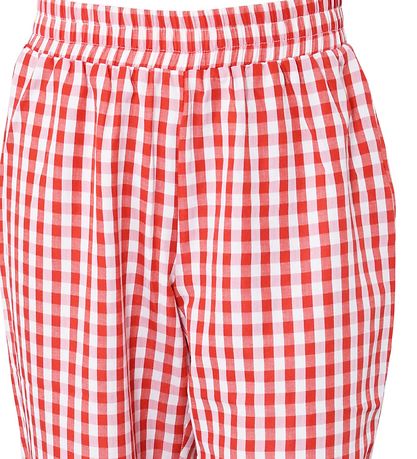 Magnifique pantalon Hound à carreaux blancs et rouges.