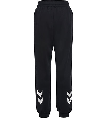 Pantalon Cool Hummel noir avec deux chevrons blancs à l'arrière des deux jambes. Sur le devant se trouve une imprimé blanche du badge DBU.