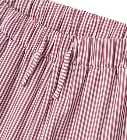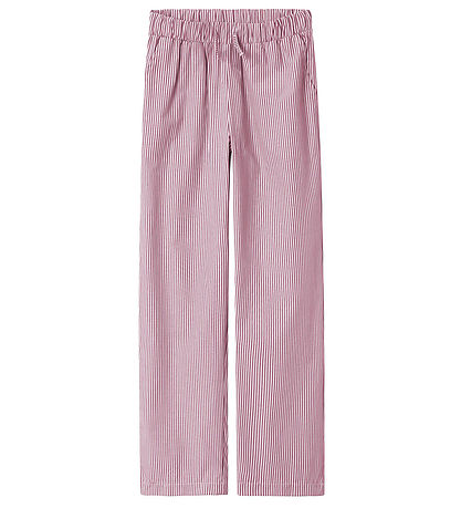 pantalon fin LMTD à fines a rayures verticales bordeaux et blanc.