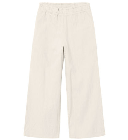Le pantalons Name It a des jambes longues et droites avec de la largeur et un large bord élastique smocké à la taille, qui peut être ajusté à l'intérieur grâce à des boutons. Devant, des poches ouvertes pratiques sur les côtés et le pantalons est confectionné dans une qualité mixte légère et au tissage serré.