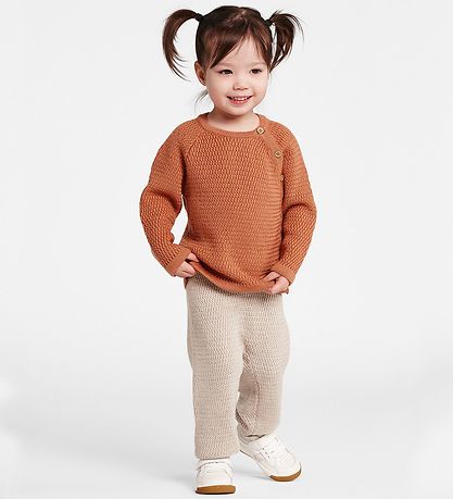 pantalon élégant Voksi en laine beige, tricoté dans un magnifique motif de ruche.