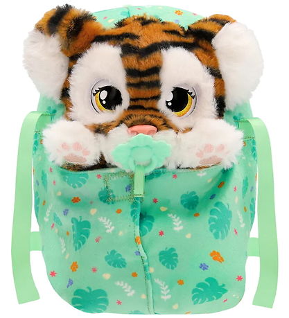 Adorable ours en peluche interactif Baby Paws en forme de plys blanc, noir et marron, accompagné d'une tétine et d'un sac de transport. Le tigre peut ouvrir et fermer les yeux et émettre différents sons. Un sac de transport est inclus pour l' Have partout avec vous.