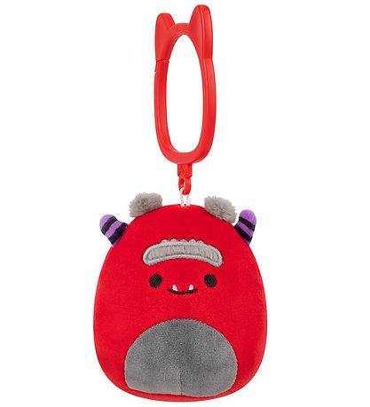 Adorable ours en peluche Squishmallows rouge et gris, doté de dents pointues et de petites horn. Une grande attache permet de l' Fast à un sac ou autre. Peluche est super doux au toucher.