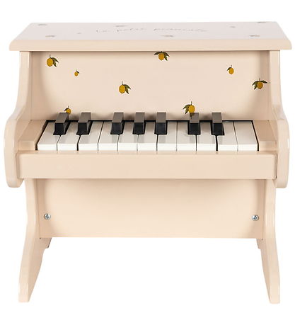 Magnifique piano Konges Sløjd en bois peint en beige avec un fin imprimé citron dans des tons jaunes et verts.