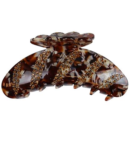 Magnifique barrette à cheveux By Stær avec un aspect marbré en marron chiné et avec a rayures strass.