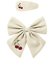 pinces à cheveux Lil' Atelier Lil' Atelier, beige clair et ornées d'un magnifique imprimé cerises. pinces à cheveux se composent d'une barrette avec un grand noeud papillon et d'une barrette triangulaire plus petite. Pinces à cheveux apportent une touche d'élégance à toutes les coiffures.