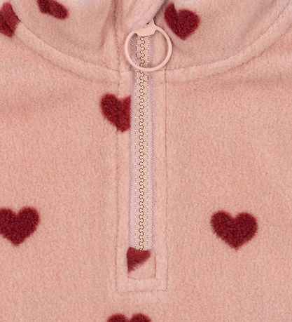 Charmant polaire Konges Sløjd dans une teinte rose clair décorée de coeurs rouges.