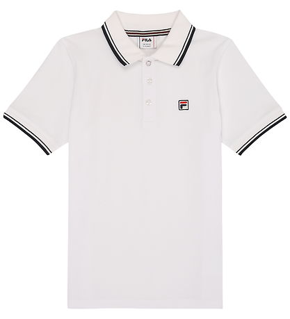 Polo Fila élégant en blanc classique avec manches courtes et a rayures noir discrètes au col et aux manches.