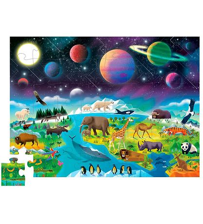 puzzle cool de Crocodile Creek avec le motif de notre monde à la fois sur terre, sous l'eau et dans l'espace.