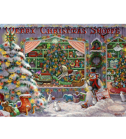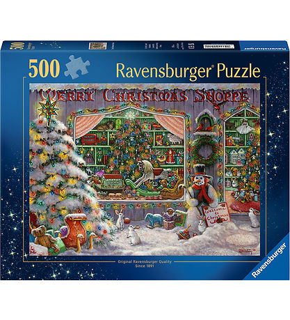 Charmant puzzle Ravensburger de 500 briques, il présente un motif de Noël chaleureux. Puzzle présente des illustrations détaillées d'une boutique de Noël chaleureuse et décorée de couleurs vives. Idéal pour créer une ambiance chaleureuse pendant les mois d'hiver.