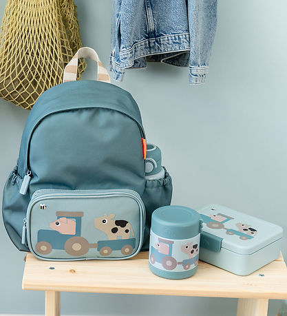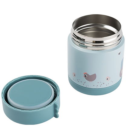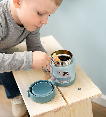 Récipient thermos Smart Done by Deer dans des tons bleus, avec un joli imprimé des amis animaux Dotti et Pigee.